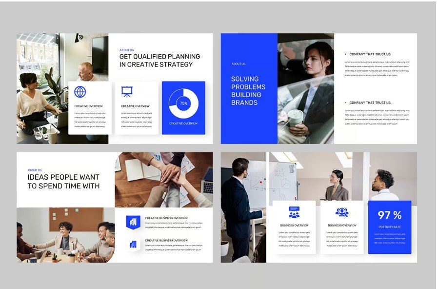 ✔ Engaging Slide Layouts – Includes sections for company overview, creative strategy, business insights, and client trust.