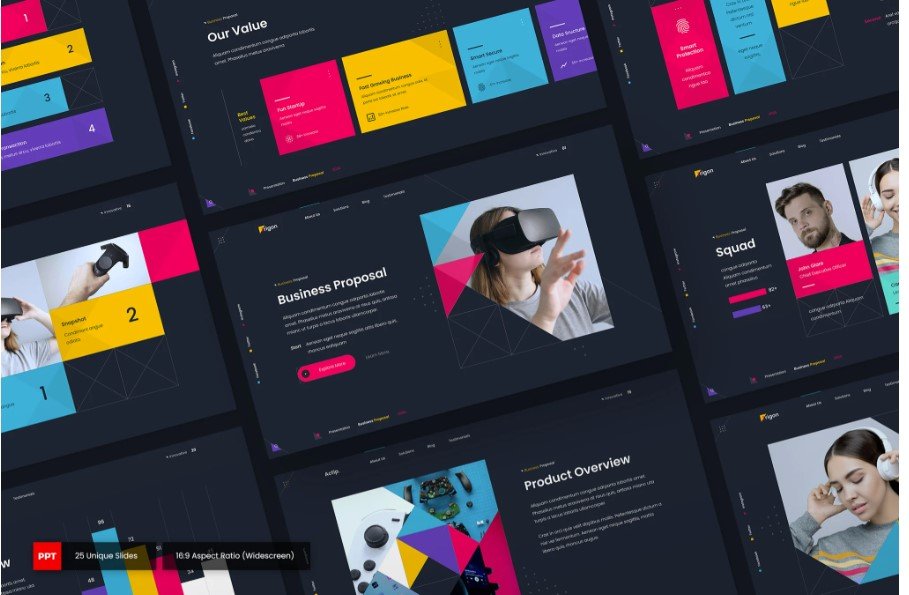 ✔ 25 Unique Slides – Includes business proposals, value proposition, team intro, product overview, and more.