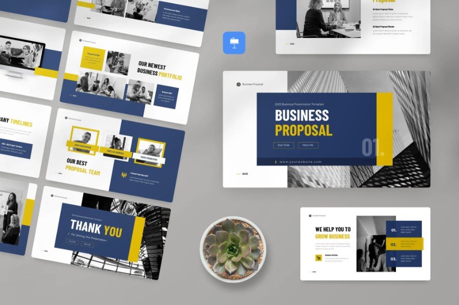 ✔ Minimalist & Professional Design – A sleek blue, white, and yellow color scheme for a modern corporate look.
