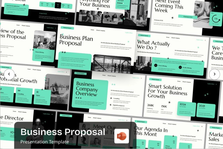 Create a professional and compelling business proposal with this modern and elegant PowerPoint template. Perfect for startups, corporate pitches, investor presentations, and company proposals, this template is designed to help you communicate your business goals effectively.