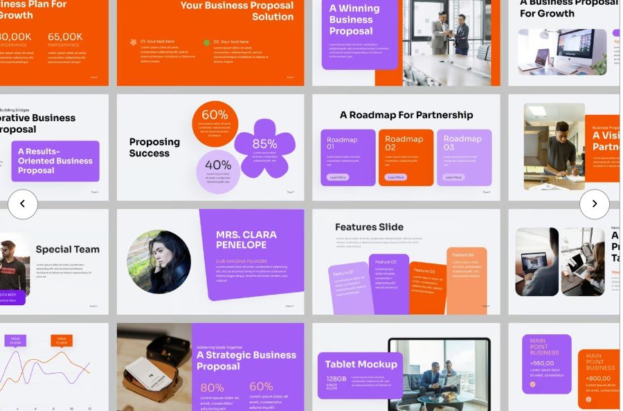 🔥 Professional Business Slides – Includes slides for roadmaps, features, proposals, and team introductions.