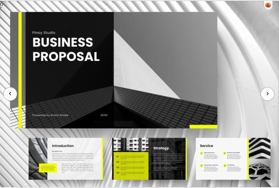 Make a bold statement with this sleek, minimalist, and professional PowerPoint template. Perfect for architectural firms, corporate professionals, designers, and business consultants, this template blends black, white, and yellow elements for a modern and high-impact look.