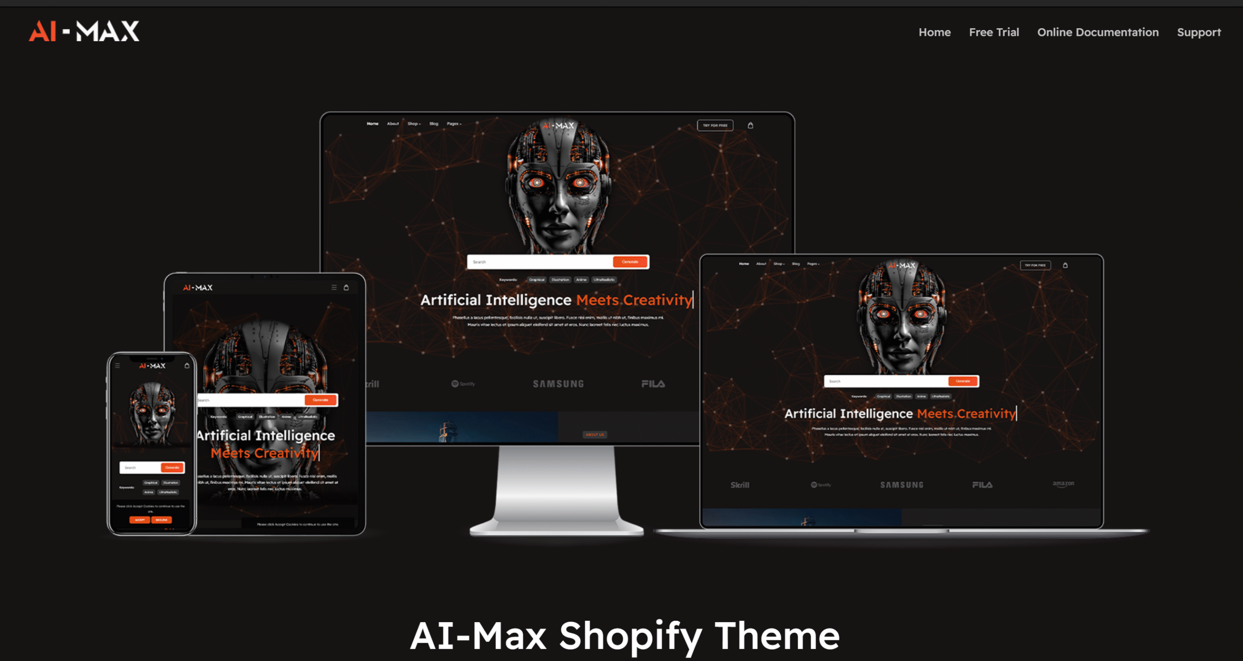 AI-Max is a modern, responsive Shopify 2.0 theme designed for AI tools, gaming, gadgets, and tech stores. With bold visuals, dark UI, and smooth navigation, it helps brands showcase innovative products with style.
