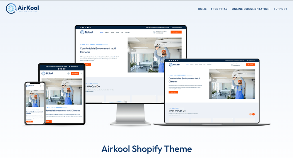 A modern, responsive Shopify theme designed for air conditioning, heating, and cooling service businesses. With a clean layout, mobile-friendly design, and easy customization, Airkool makes it simple to showcase services, highlight expertise, and attract new customers online. Perfect for HVAC companies looking for a professional and user-friendly website.